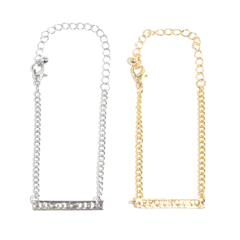 "PROTECTED" PENDANT BRACELETSIZEPENDANT SIZE 2.9 CM * 0.4 CMNECKLACE TOTAL LENGTH 15.3 CM + 7 CM EXTENSIONCOLOURGOLD TONE / SILVER TONE